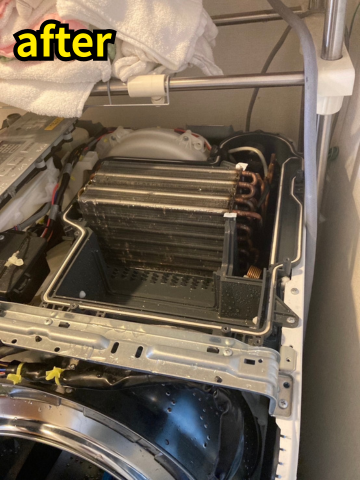 乾燥が、5時間以上!?めちゃくちゃ長いこと乾燥かけても乾かないことがお悩みでした。 乾燥フィルターの目詰まり、乾燥経路ホコリ除去、熱交換洗浄、洗濯槽カバーの内側をキレイに洗浄したことで、お悩みが改善されましたことで乾燥時間が2時間程になりました。